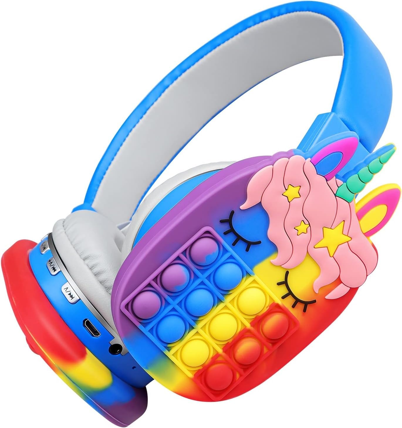 - 【Cute Cartoon Adjustable Headset with 3 Models】Adjustable headband and foldable bluetooth headphones design, easy to carry, suitable for sports, running or traveling. Contrast color is personalized and unique for eyes catching. The bubbles on the side of the headset brings joy to every children and adds fun to your daily life. Short press the button M can switch the 3 play modes (Bluetooth model/ TF Card mode/ Radio Mode).