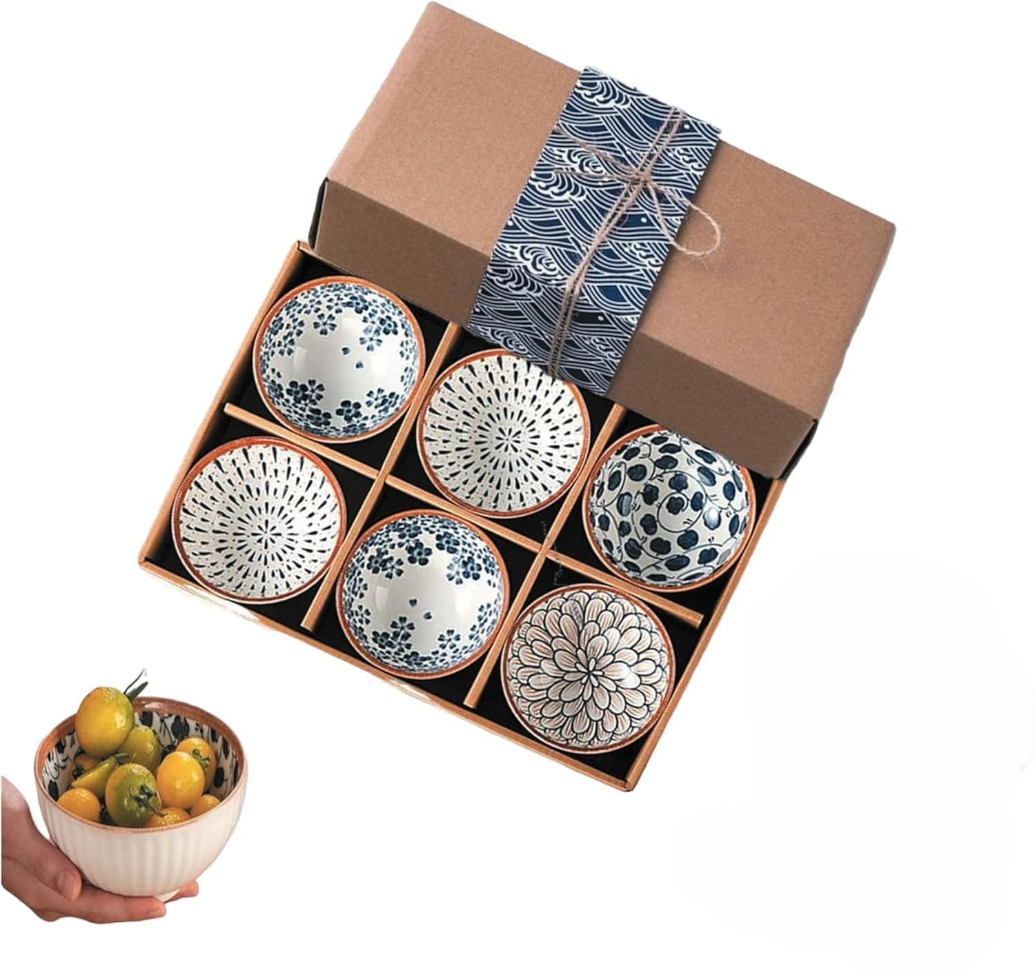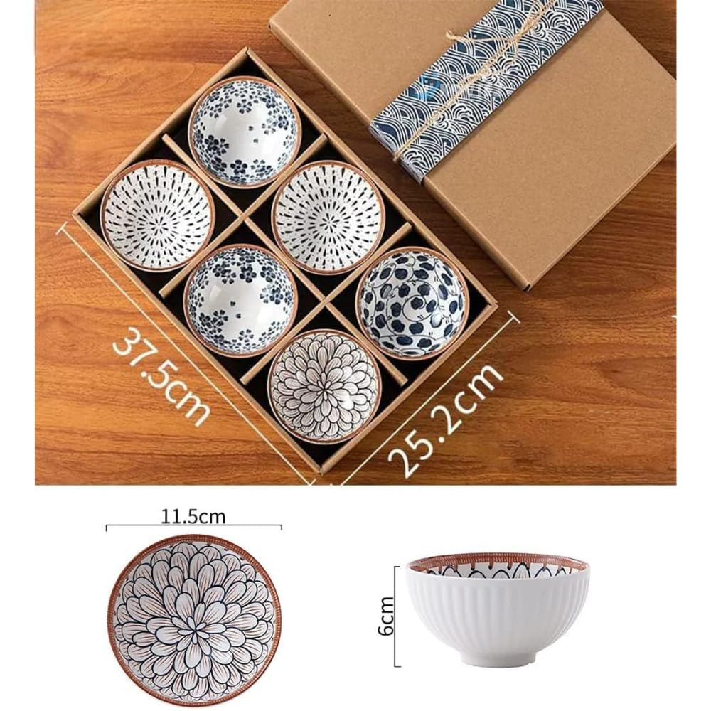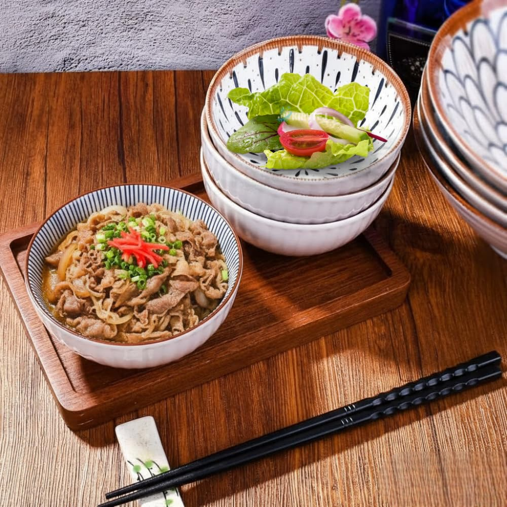 - 🖼️ Unique Hand-Painted Designs 6 beautifully printed bowls with Japanese floral & geometric patterns.