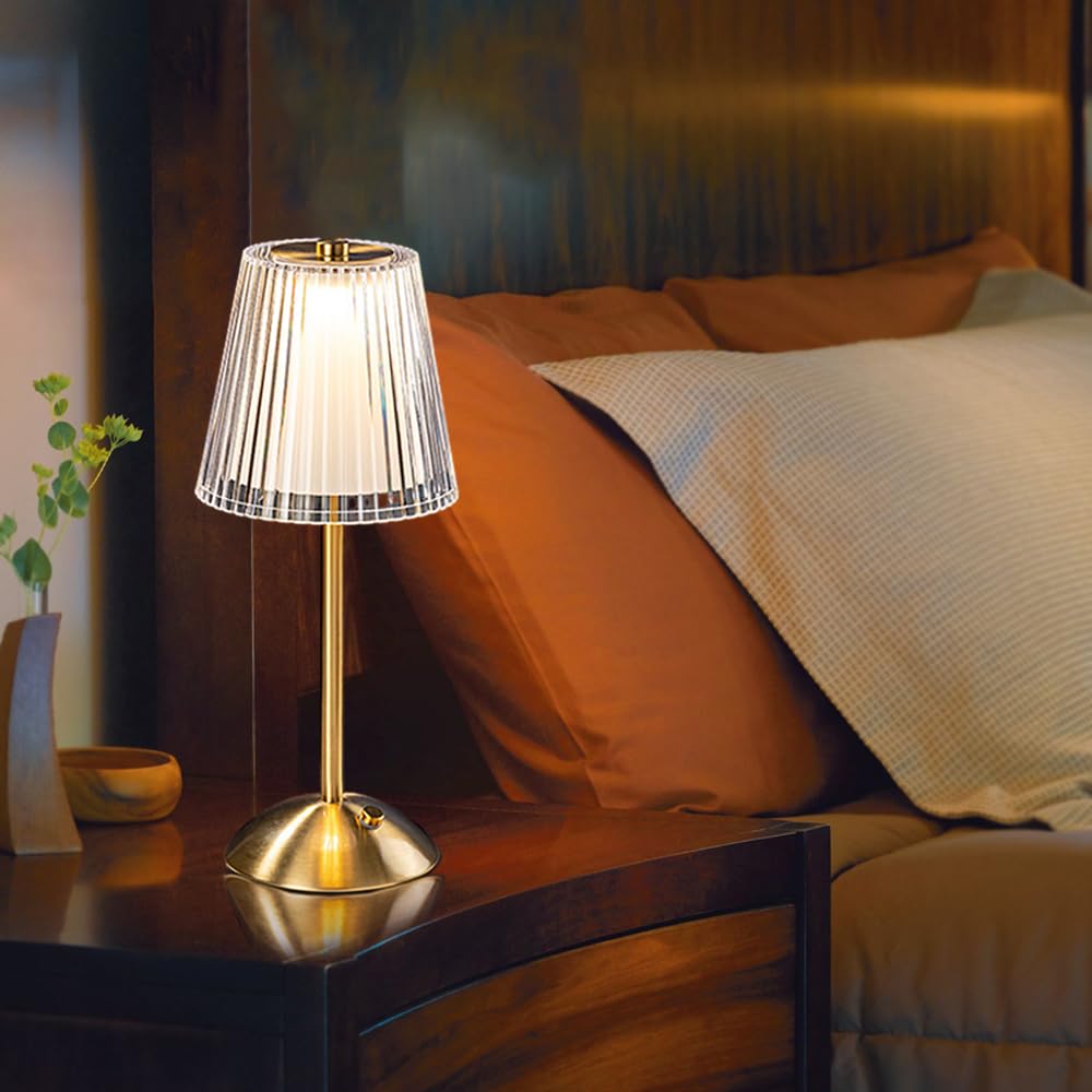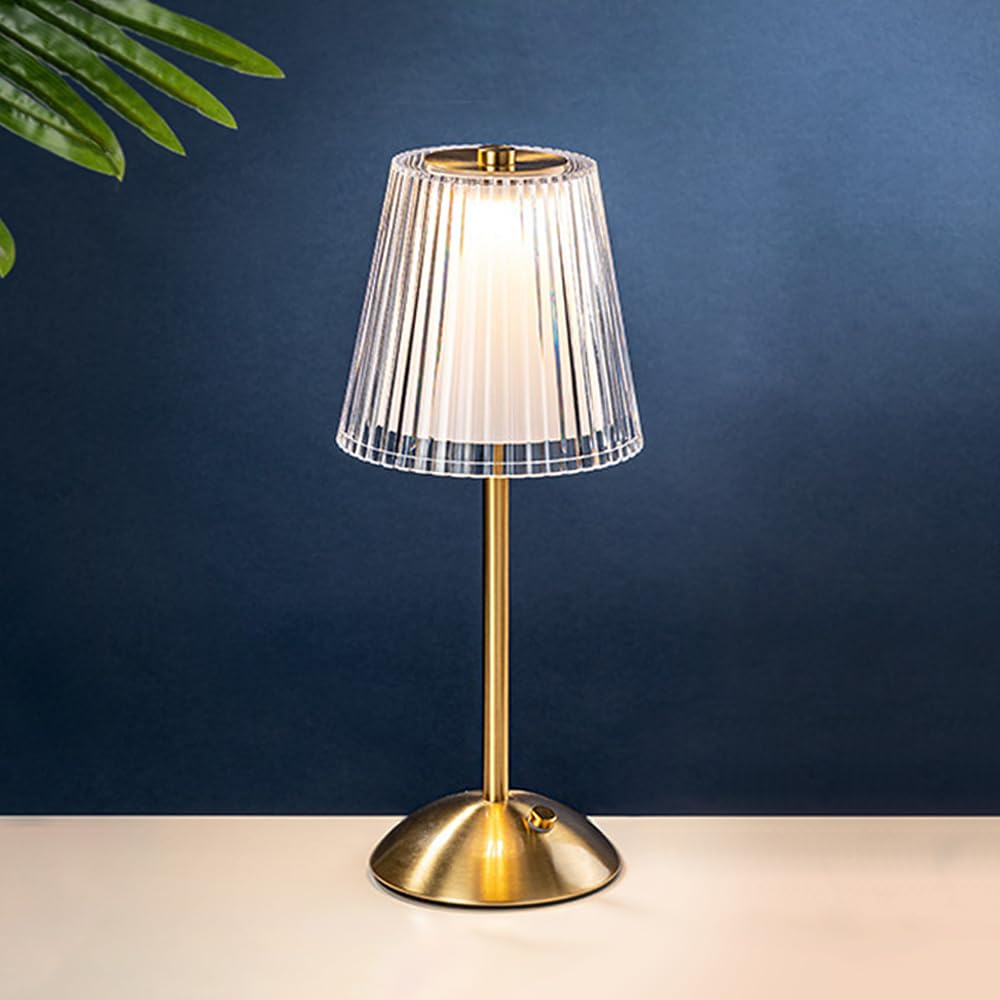 - Specification: Power: USB Operated Size: 11.81 inches height, 5.12 inches diameter Color Temperature: 3000K Warm Light/4500K Natural Light/6000K Cold Light Material: Metal base + Optical Acrylic Crystal Lampshade Light color: White light, Natural White light, Warm White light (all adjustable brightness) Color:Brass Gold