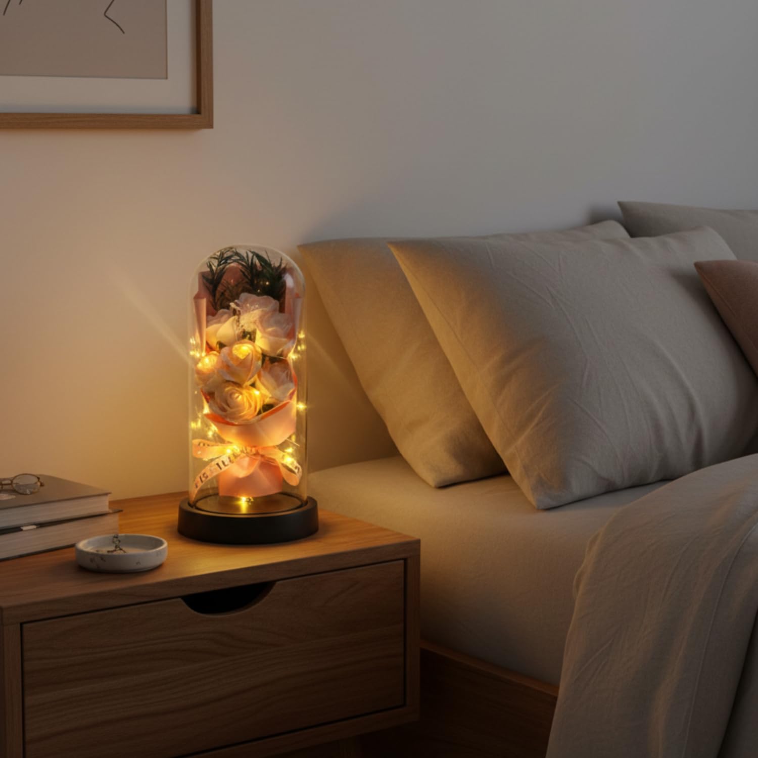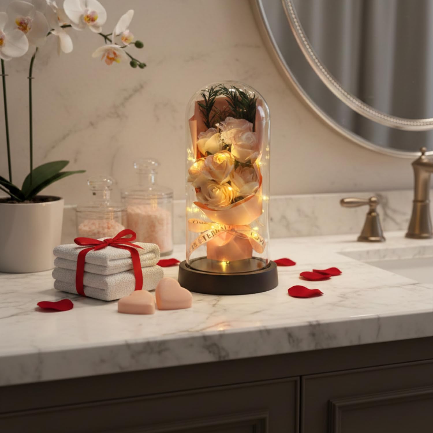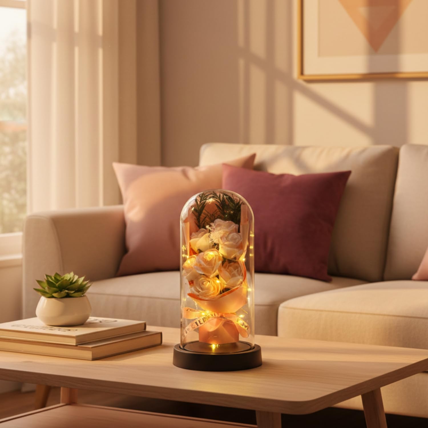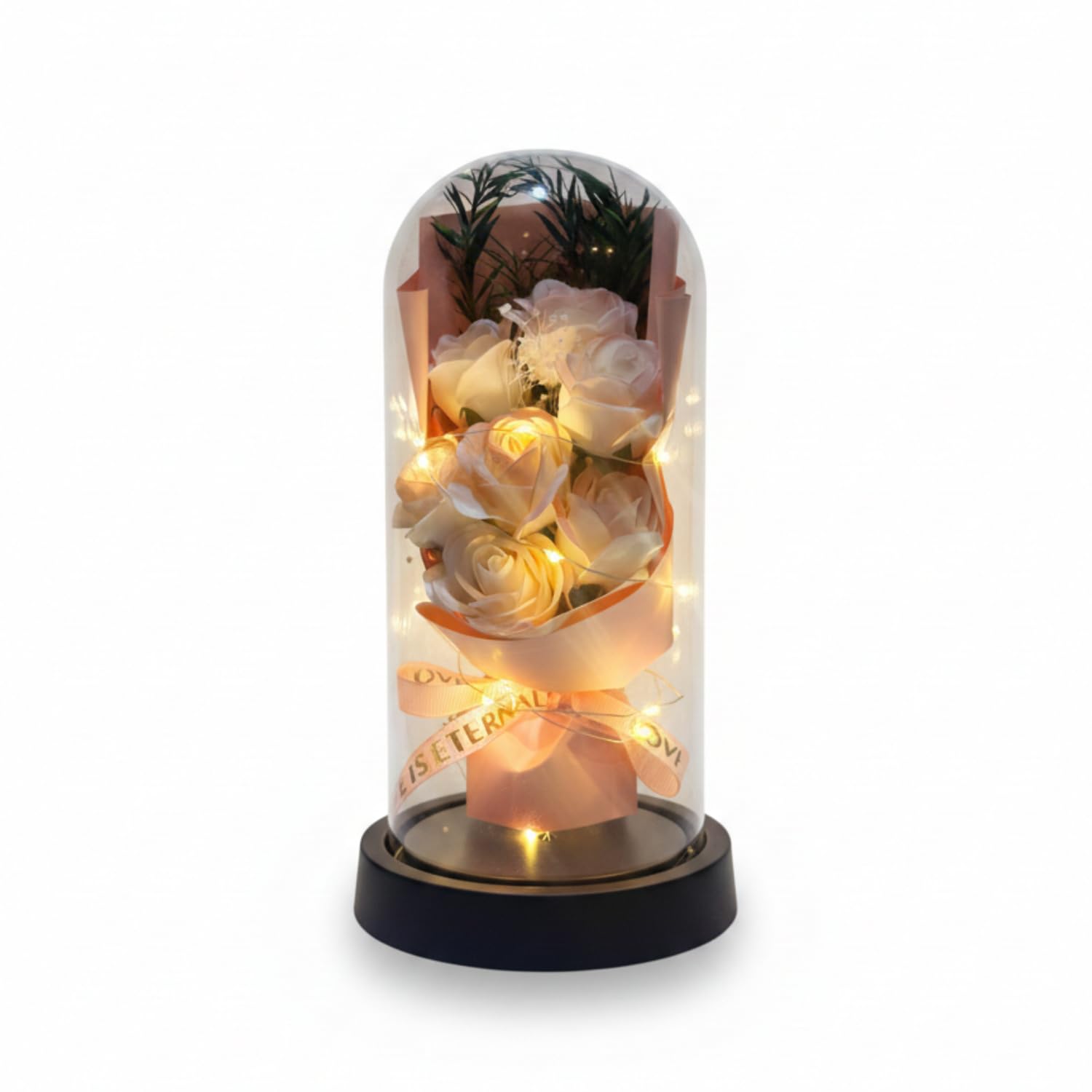 - ��REMOVABLE GLASS DOME: If you want to get a clear picture of the roses inside the glass, our removable glass can do this for you. You can lay a small extra gift like a ring, a card, a picture inside the glass as well to make an ideal surprise to your special one. Besides, transparent glass endows KYLIN GLORY never withered rose with an art of beauty and with indoor decor like living room.